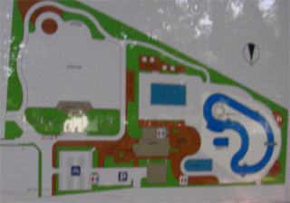 花小金井駅の北口から線路沿いに続く商店街を進み、小金井街道を渡り、小学校の隣の緑道を進むと東部公園で、その奥にプールの建物がありました。入り口の券売機で2時間350円の券を買うと、おつりが10円玉で出てくるので、10円のロッカーで小銭がなくて困ることはありません。1階が男子、2階が女子のロッカー室で、広い敷地に25メートルプールと流れるプールがあります。