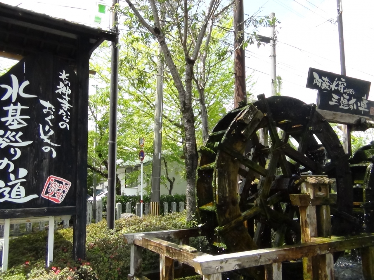 阿蘇神社の近くにある門前仲町はさまざまな湧き水があり、散策コースになっています。それぞれ水基は門前仲町の店先に設置しており木造もしくは石造りになっていて名前がついています。ひしゃくもあり散策中に飲むことができます。