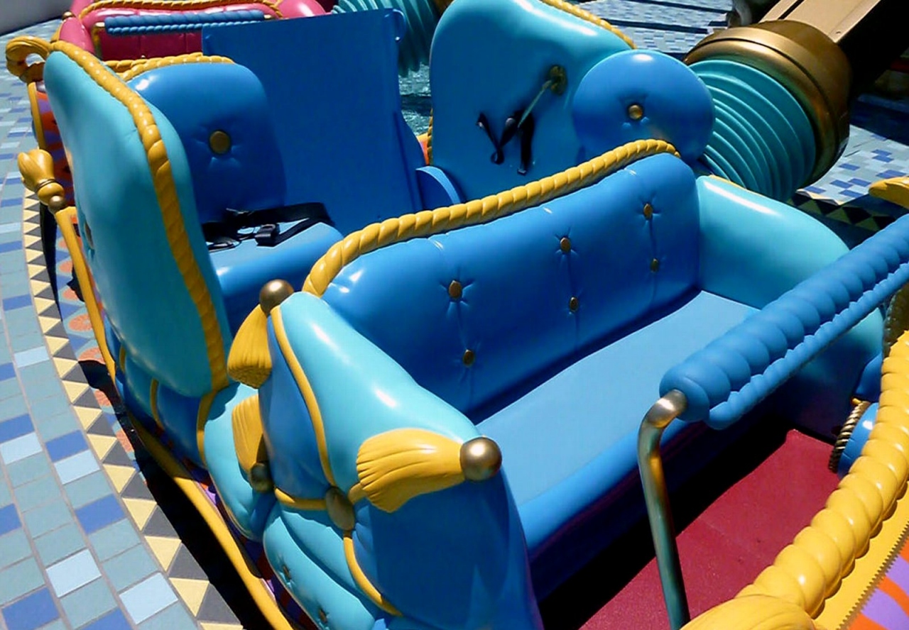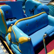ディズニー映画『アラジン』に登場するフライングカーペットを模した乗り物です。他と違うのは旋回するだけでは無くなんと自分で上下に動かしたり、傾きを変えたすることができる点が人気の秘密です。小さい子どもでも難なく操作ができる。以外に人気で多少の行列ができていました。