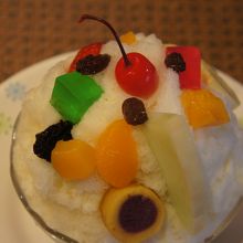 天文館むじゃき、かき氷の「しろくま」があまりにも有名。学生時代に食べて、食べきれるか心配になるような桁外れの大きさに驚いた記憶があります。しかし、今はベビーサイズというのがあって、これなら大丈夫。食後のいっぱいでもちょうどいい大きさです。持ってきてくれる店員さんが、上から見ると白熊に見えるようになってますと丁寧に説明してくれました。