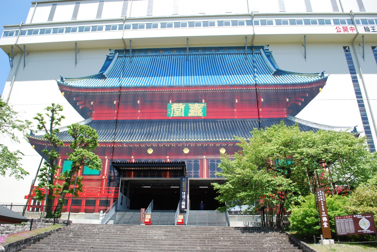 三仏堂は、約50年ぶりの大修理(平成19~30年度・予定)が始まり、一部が仮囲いで覆われたり、通行場所が制限されております。