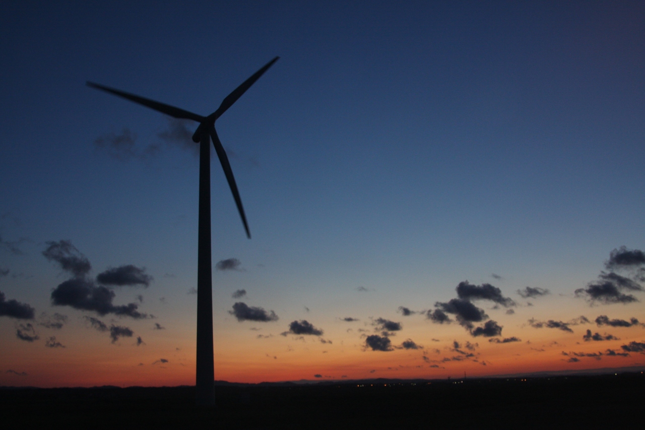 夕暮れ時に訪れたのですが、夕日に風車が綺麗に映えてました。