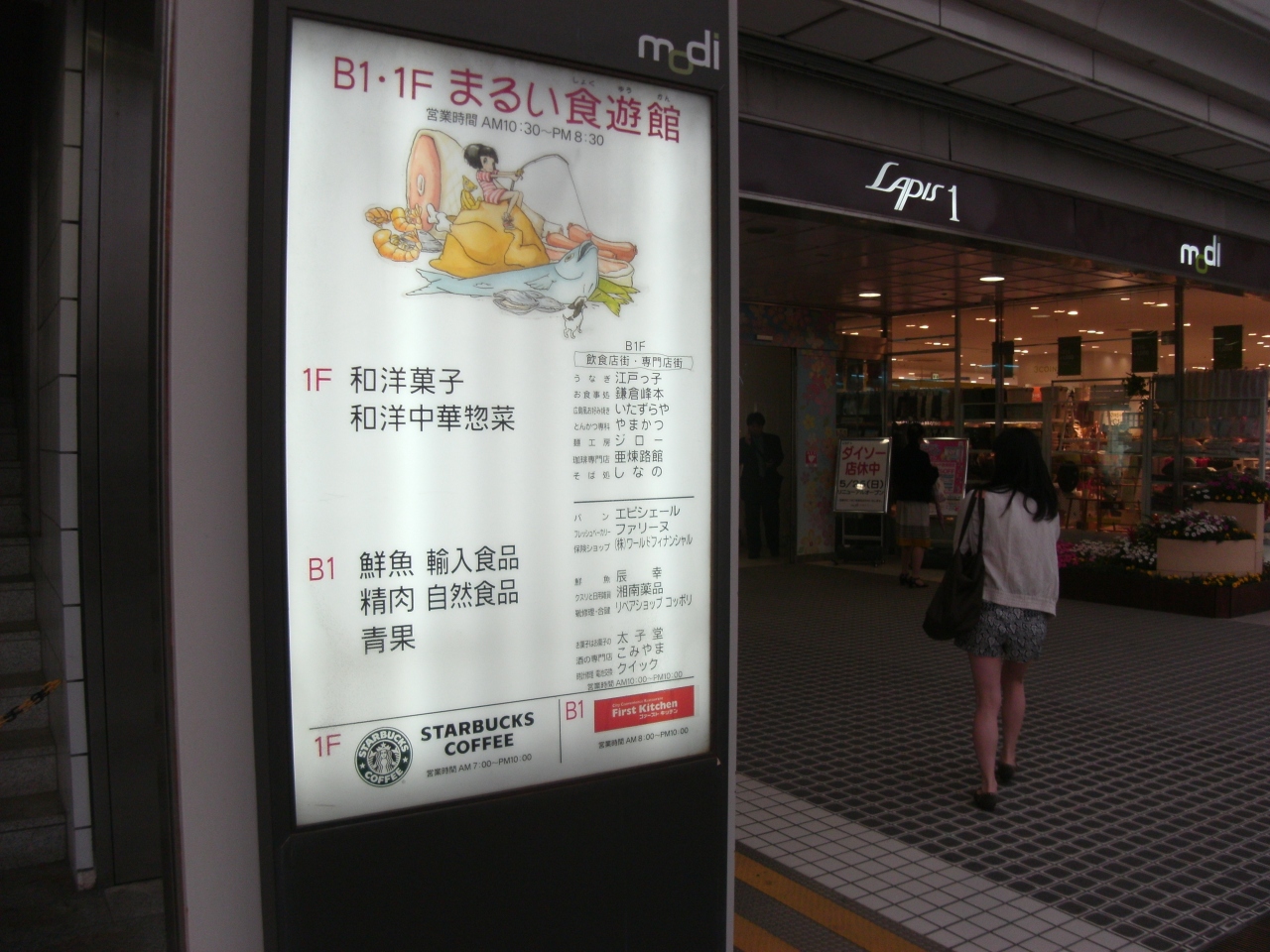 ユニクロが入っていました。おう、100円ショップ(ダイソ)、ABCの靴屋さんも。7階レストラン街は名のあるお店が・・地下はまるい食遊館。地下鉄口から通じてる。