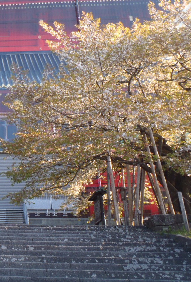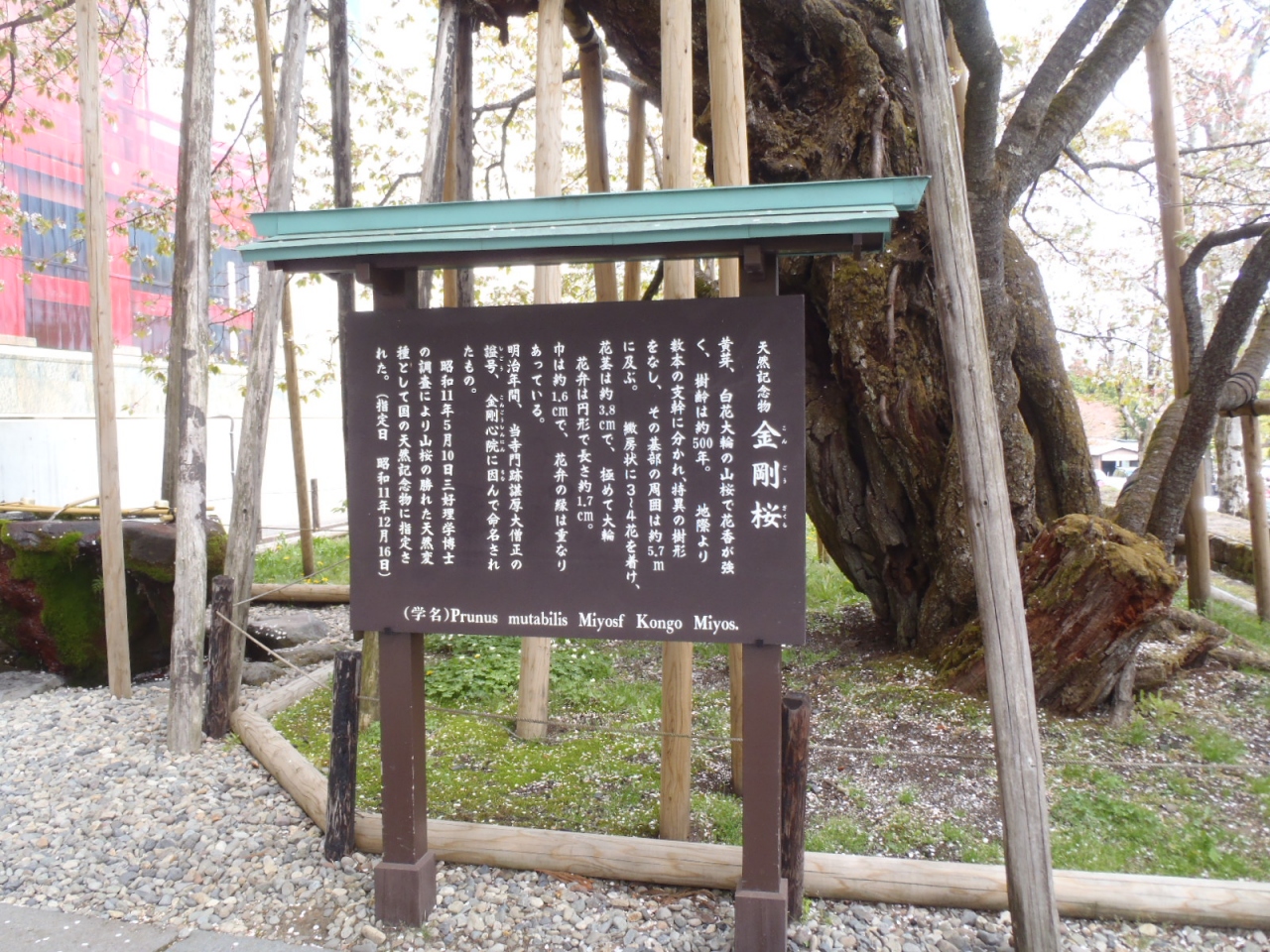 山桜の勝れた突然変異種に属し、加うるに樹形の著しきにより名木として指定を受く。