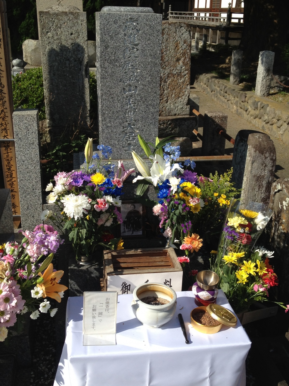 墓前には写真と花が手向けられており、数回行きましたが花がなかった事はありません。