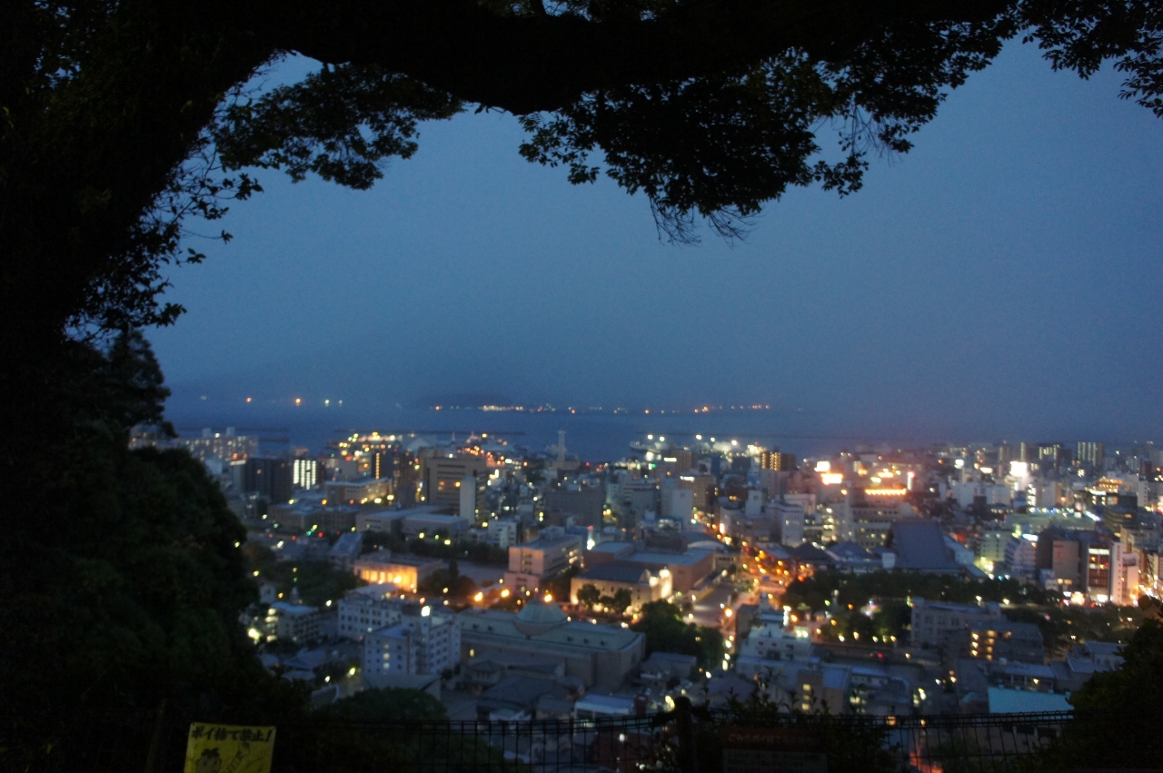 城山展望所は、鹿児島市内越しに錦江湾、桜島が一望できる絶景スポット。今回は、鹿児島シティビューの夜景コースを利用してみました。ガイドさんが付いて、城山や西南戦争の話もしてくれます。夜景がいっそう印象深いものになりました。