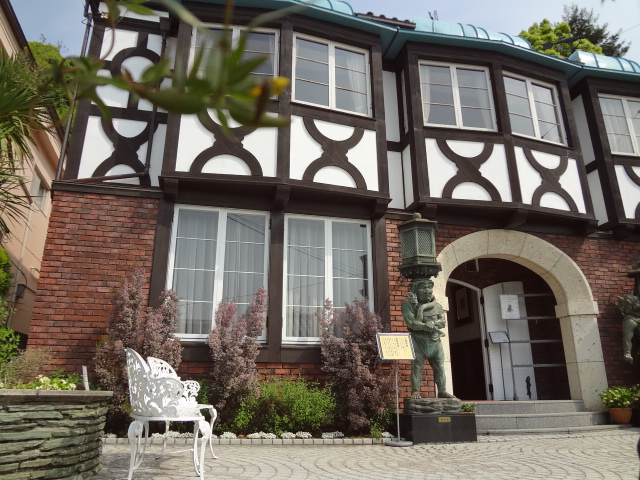 英国テューダー式のシックな外観の異人館です。ロダンの近代彫刻やルノアールのブロンズ作品などが館内に展示されていました。座ると願いが叶うというサターンの椅子もあります。男女で左右どちらに座るか違うそうなので間違えないように。