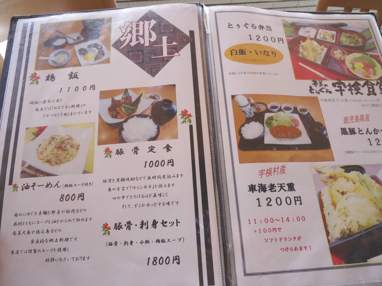宇検食堂さんは広くて明るい店内、メニューも豊富です。