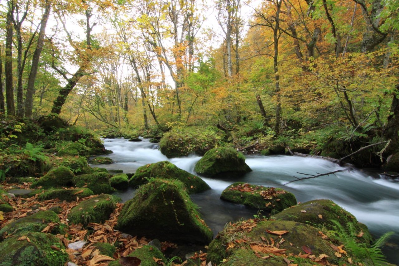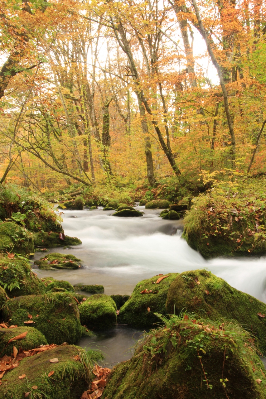 まわりの木々と渓流が作り出す景色がすばらしかったり、苔むした岩と流れのコントラストが美しかったり、絶景と次々に出会えるのが奥入瀬ですが、ここもその一つではないでしょうか。