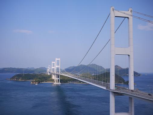 来島海峡大橋は、全長4キロの長さで世界初の三連吊橋だそうです。