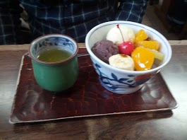小町通りのぶらぶらして帰りに立ち寄りました。おやつ時を外していったつもりだったのですが、中は結構混んでいました。しかも外から中の様子が見えないので、戸を開けるときに結構緊張したのを覚えています。クリームぜんざいと、こしあんしるこを注文し、おいしくいただきました。特にクリームぜんざいは本当においしくて、自分も注文しとけばよかったと後悔しました。また行ってみたいです。