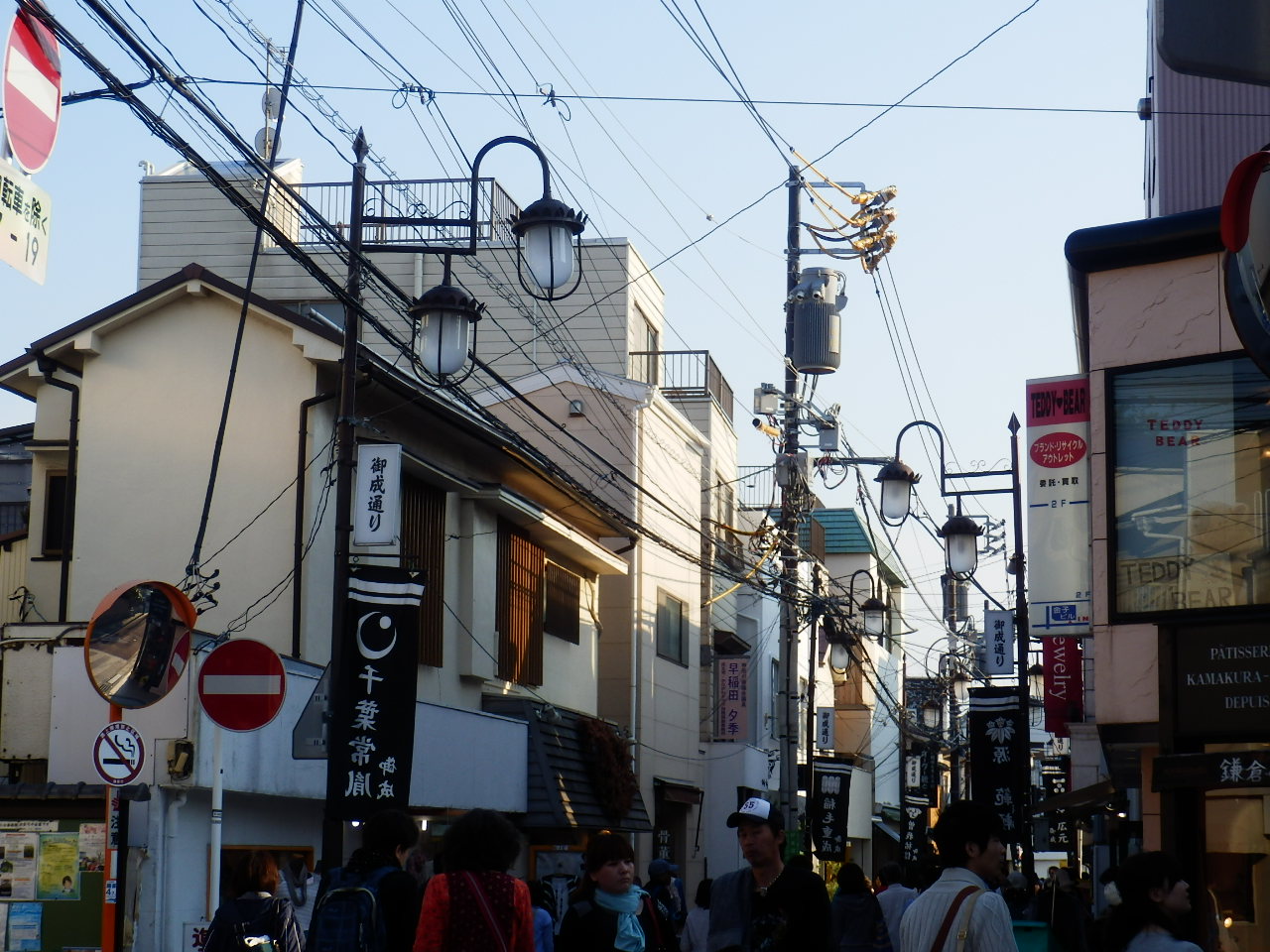 鎌倉駅の市役所側の出口前に広がるロータリーから北へ伸びる通りが御成商店街です。ごく普通の住宅街の中にある商店街といった雰囲気で、住民のための雑貨屋さん等もありますが、観光客向けのカフェ等も点在しているため、帰宅途中にカフェで一服するのにも良い場所だと思います。