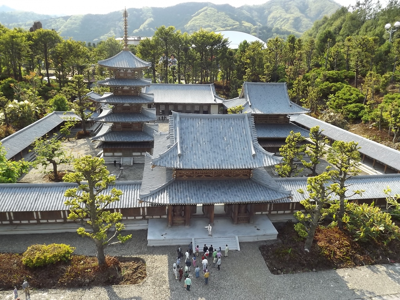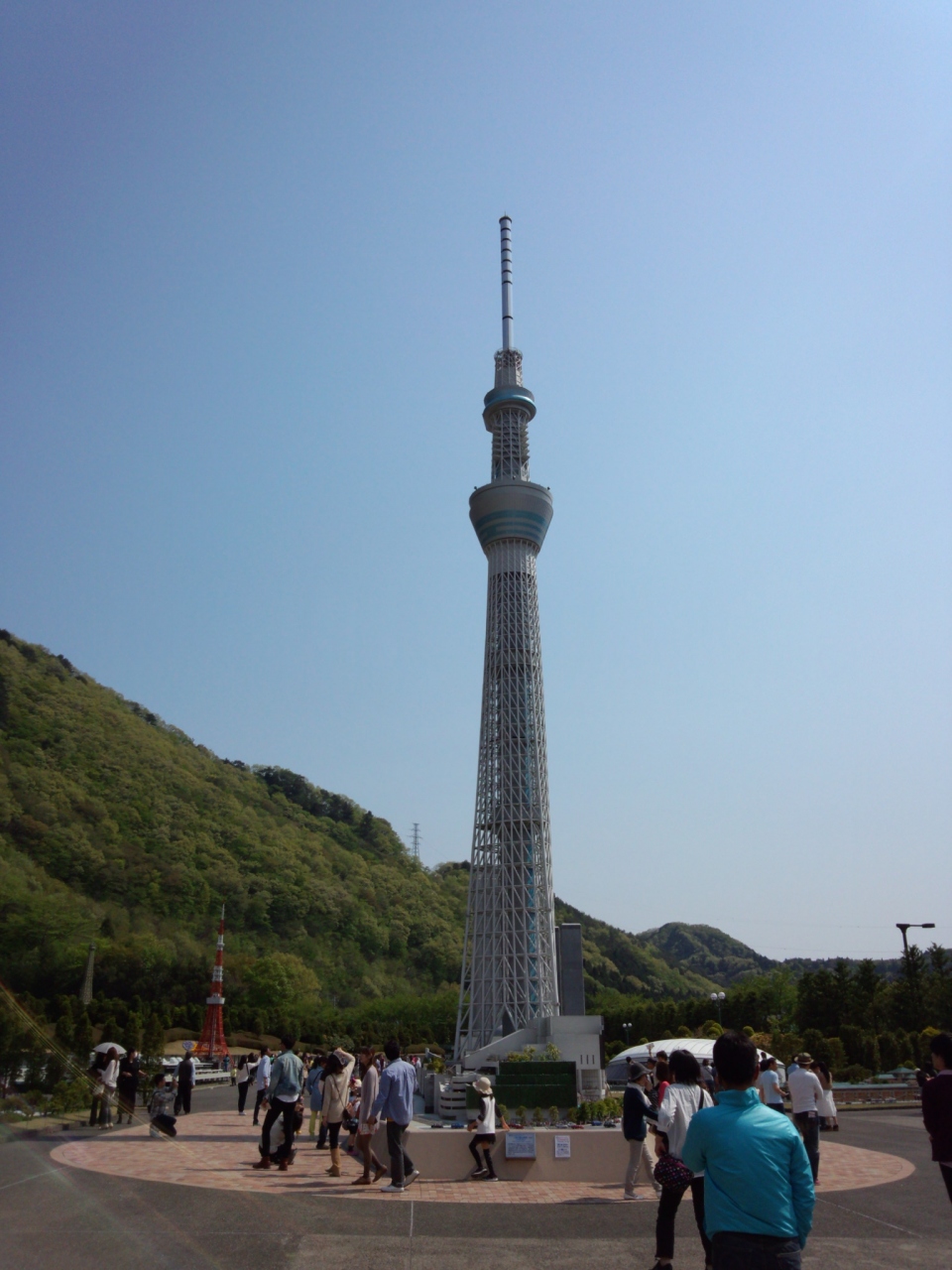 世界各国の有名な建造物が25分の1のスケールに再現されてます。最初に日本ゾーンです。真っ先に目に飛び込むのが東京スカイツリー。25分の1でも見上げる高さです。そのすぐそばに東京タワー!夢の共演です。