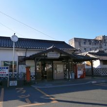 蔵をイメージしたような駅舎からまっすぐ道路が延びており、途中で右に曲がり、徒歩15分ほどで、吉井の古い町並みまでアクセスできます。
