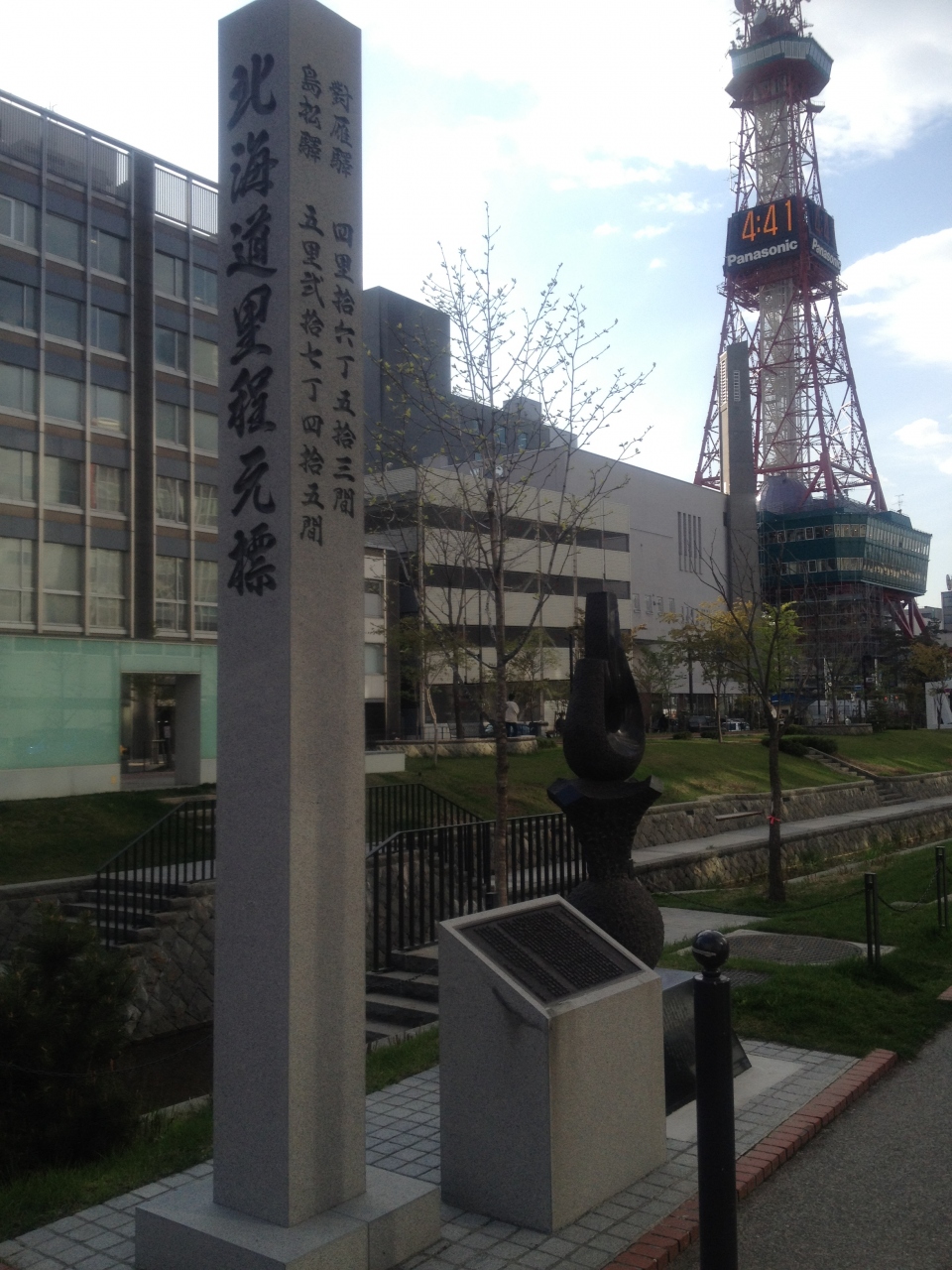 「この地は、銭函から千歳に抜ける道と藻岩山麓を通り篠路に行く道路の交差点に当たり、明治2年11月10日、開拓判官島義勇石狩大府の建設をこの地から始めた。今日の札幌市はこの付近を基点として発達した。」という記載があります。