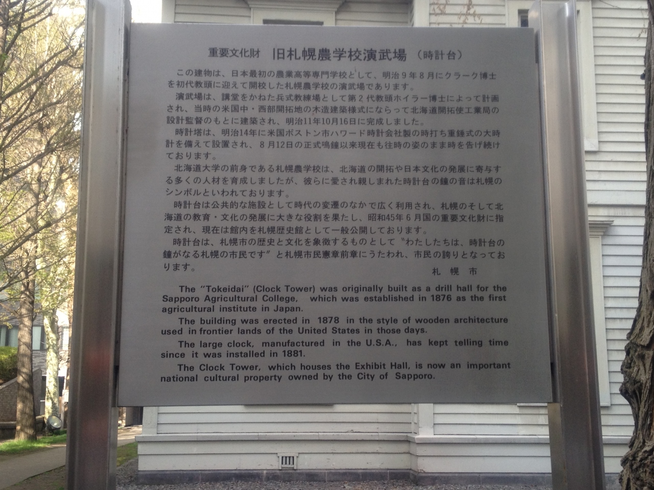 札幌市時計台は、明治11年に札幌農学校の演武場として創建された国の重要文化財ですが、当時は現在地より約130メートル北東寄りの場所にありました。