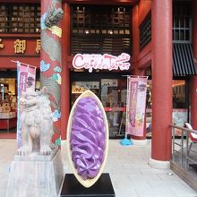 国際通りの県庁寄り入り口からすぐのところにあるお菓子御殿です。他のお菓子御殿同様、紅いもタルトをはじめとするお菓子が揃ってます。ガラス越しですが、紅イモたるとの製造過程も見学できます。横にはカフェも併設されており、2階にはレストランもあります。