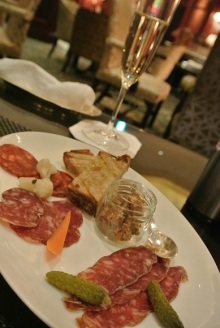 お酒のおともに生ハムやサラミ、フォアグラソテー等の