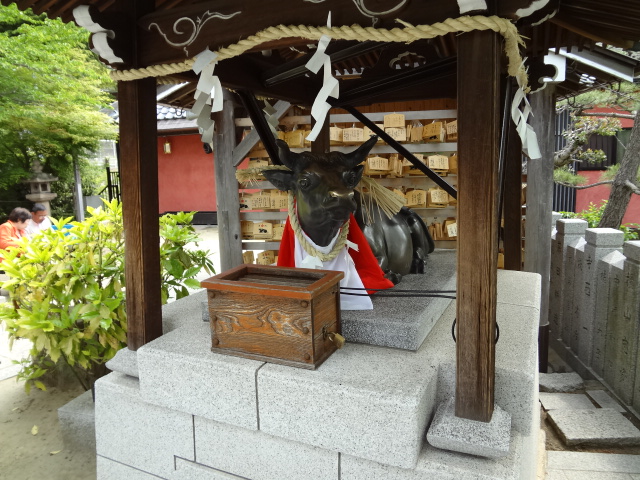 長い階段を上がっていくと、神戸北野天満神社があります。境内からは風見鶏の館の屋根を間近に見ることもできます。1180年に平清盛が神戸に遷都した時に建てられた神社だそうです。小さなランドセルの形のお守りもありました。
