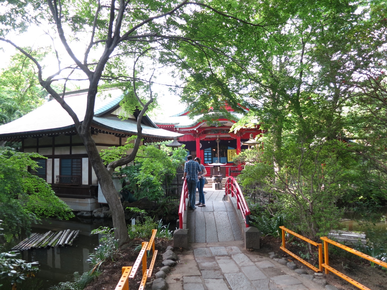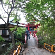 朱色の鮮やかな建物が行けによく映えていて気持ちの良い感じです。