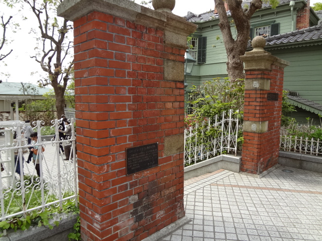 萌黄の館のすぐそばに建っている煉瓦造りの門柱です。明治37年頃、旧居留地に建てられたジャーデン・マセソン商会というイギリス商館の門柱だったそうですが、昭和53年に保存のためこの場所に移築されたそうです。