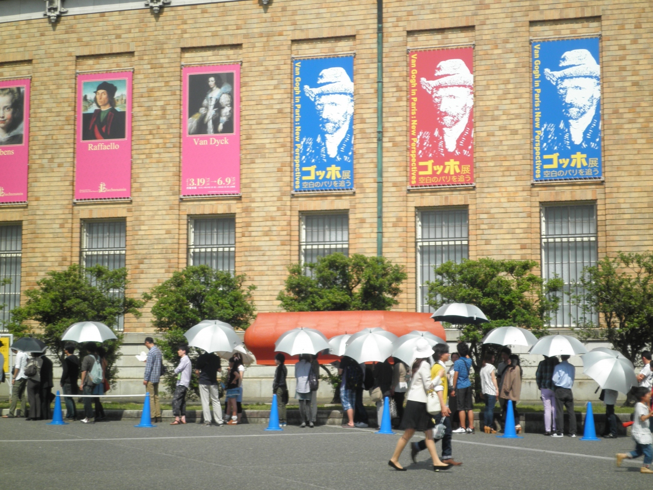 美術館は、人気のある作品が展示されることが多く、毎回たくさんの人が訪れているように思います。チケット購入時は、売り場で並ぶので、できれば事前に購入されることをおすすめします。一応、暑い日は、パラソル(大きめの日傘)を無料で貸してくれるので、チケット売り場で待つ際に助かります。