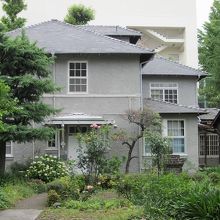 一見すると普通の民家のようですが、関東大震災前の1916年築の洋館で、国の登録有形文化財です。西町インターナショナルスクールと同じヴォーリズの作品で、大きな庇や白い窓枠など特徴が似ています。
