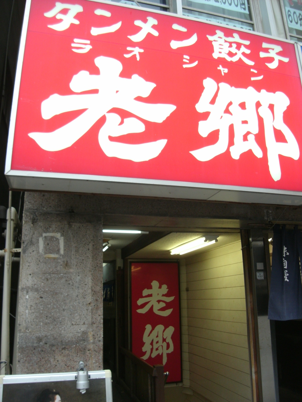こちら宝町店。平塚駅北口出て右方向に紅の白抜き看板「老郷」平塚名物の湯麺のお店だ。ご当地通なら知らぬものはいないほど、古くから根ざしています。さらに2系列あること(詳しく知りませんが、花水にあるお店系)。
