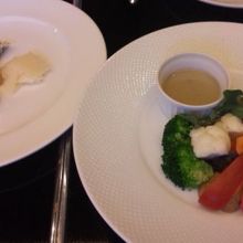 メイン料理の出でくるのが遅かったのですが、なんとサービスでハウスワインのボトルが。