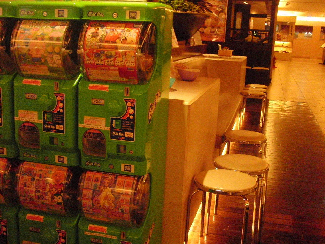 特にレストラン街は人気店など土日は待つことが多いのですが、ちゃんとベンチや子供用のガチャガチャ機が置いてあって、ある意味では気が休まり、ある意味では気が休まりません。