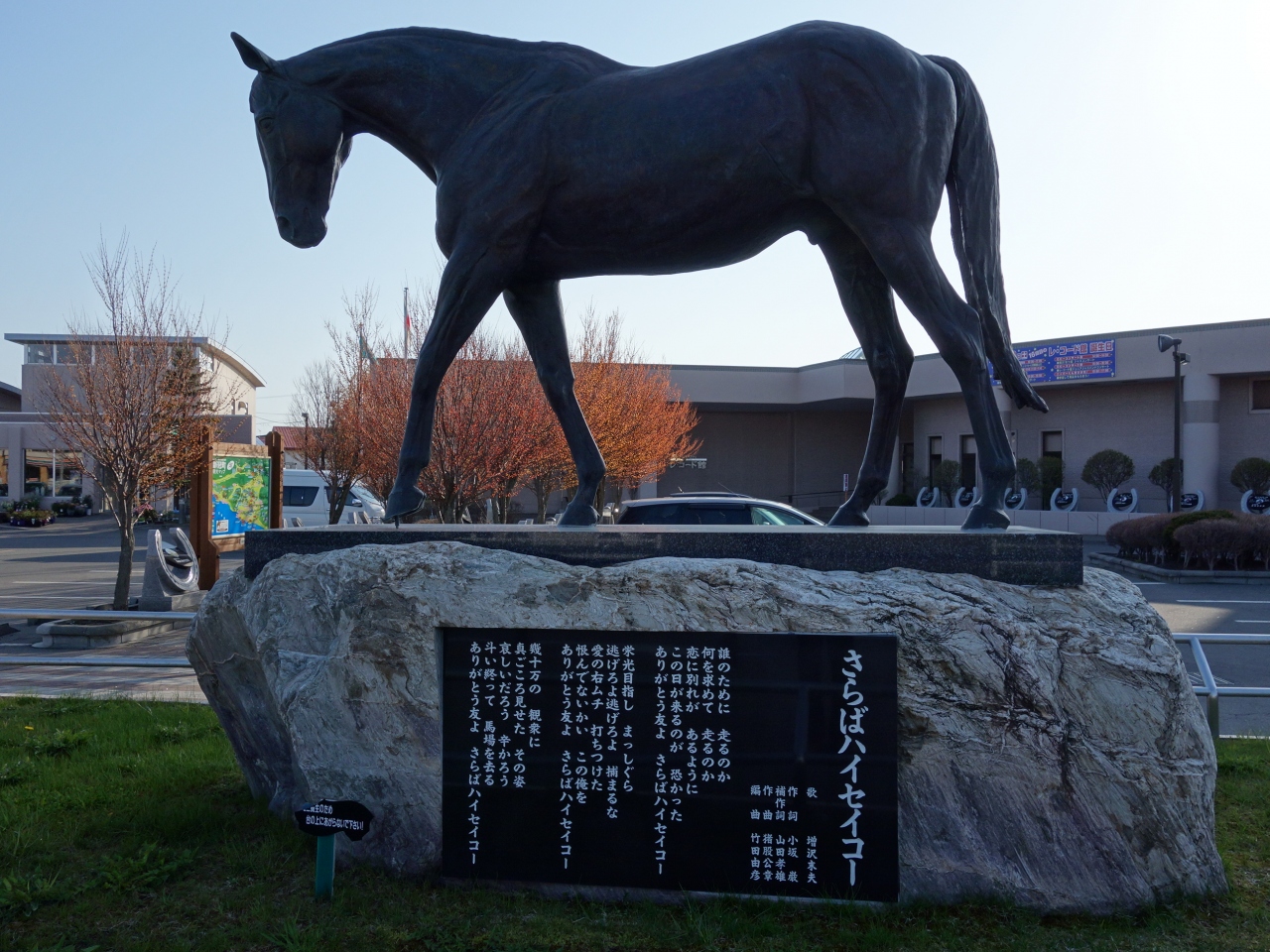 静内の少し西,新冠にある道の駅。レ・コード館の建物が目印ですが,駐車場に歴代の競走馬の石碑があるのでもわかります。この道の駅に入ると,この土地が馬を中心にしてできているのが良くわかります。馬の文化と言うのは深いのです。
