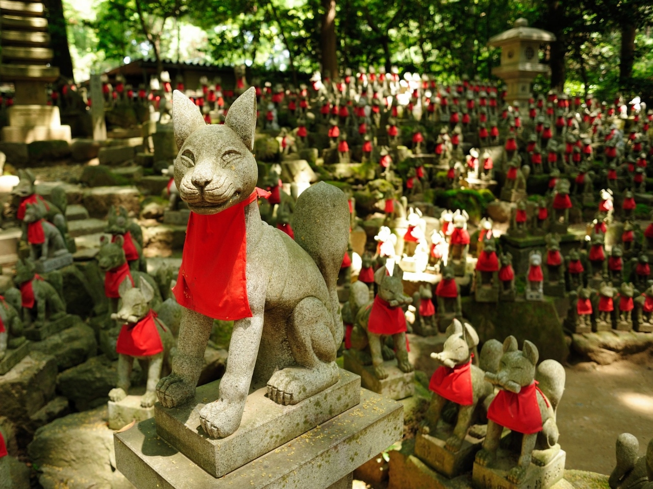 豊川駅を降りてから、豊川稲荷までキツネの像やポスターがいっぱい。