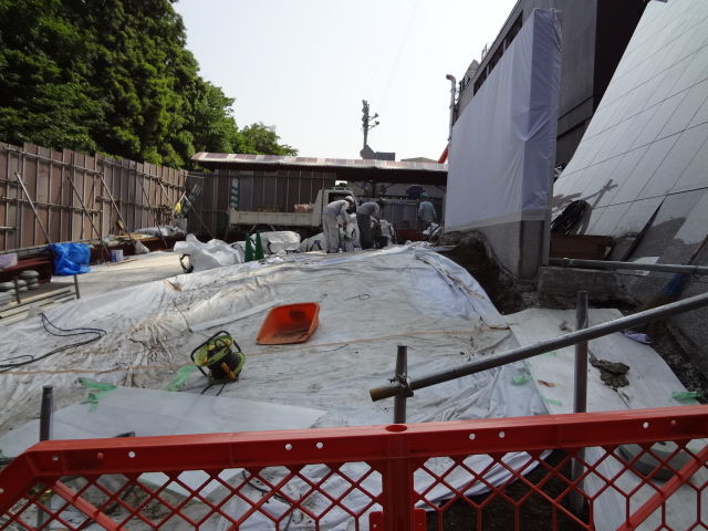 東京タワーの橋脚のたもとにあった「カラフト犬」の像が撤去される話は新聞で知っていたのですが、私が訪問したときはちょうど撤去の工事中で、白いビニールシートで覆われていました。そのあとは花壇になるそうです。