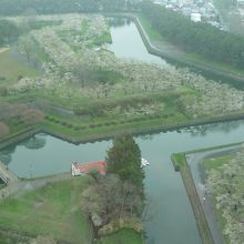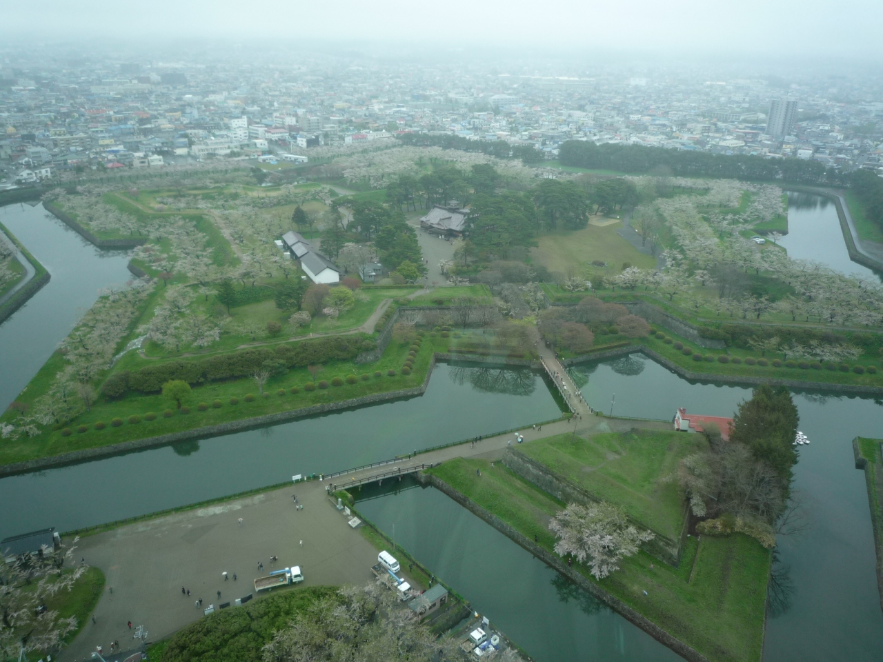 桜満開の五稜郭と五稜郭タワーである。五稜郭の中には、箱館奉行所の再建が2年前になされ、見ごたえがある。タワーから見ると、桜満開。今年は、満開になると同時に歯が出てきたことから、少し色が薄い感じがした。