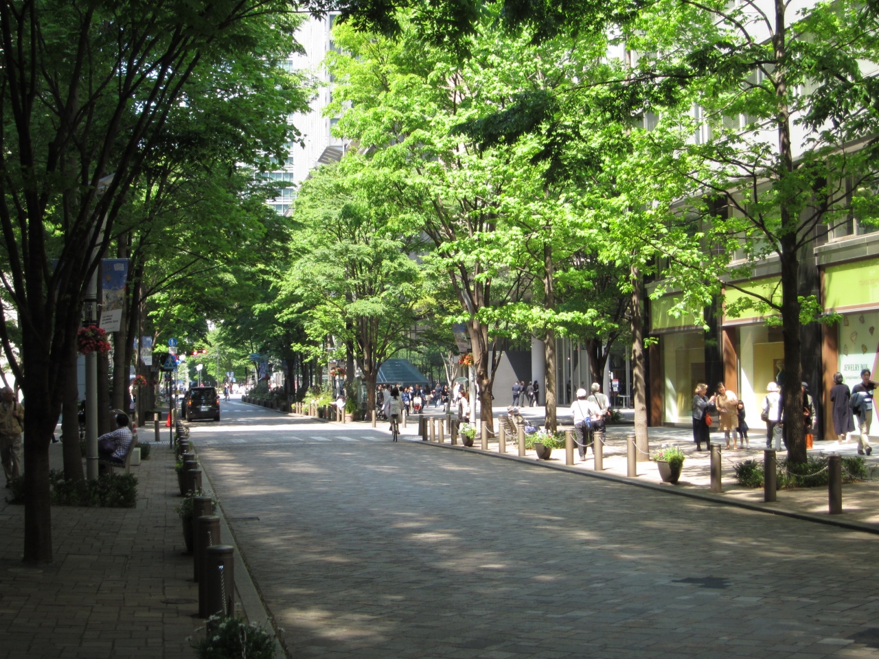 丸の内ビルディングから有楽町方面へとつづく通りはブランドショップがならび見ているだけで楽しくなります。