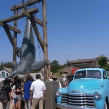 ボートに乗ると、まずは平和な港に出ますが、途中でなぜかジョーズが迫ってきます。