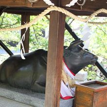 牛の銅像があり、みんななでていました。
