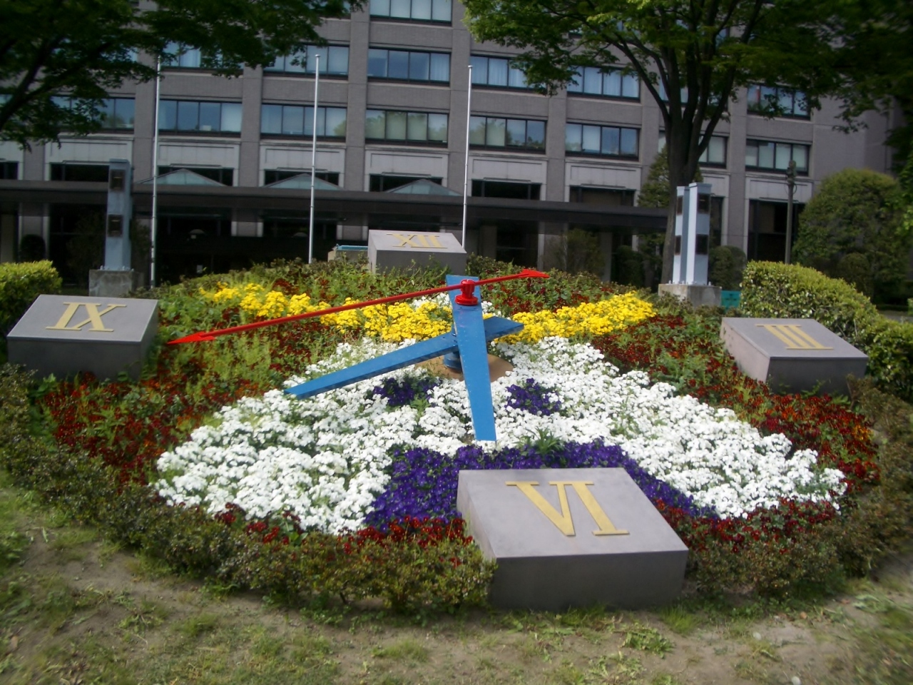 ちょうど、ディスティネーションキャンペーンの期間中で、県庁正面の花時計が「むすび丸」になっていましたよ。