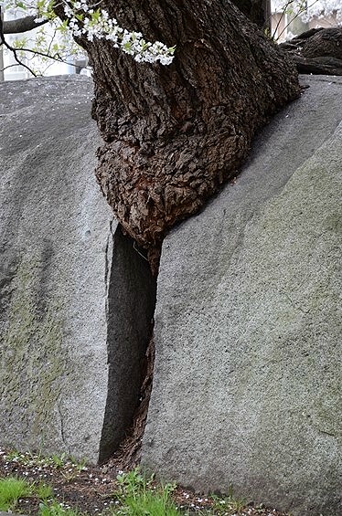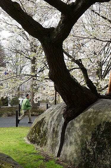花崗岩の割れ目を押し広げて成長した、ど根性桜