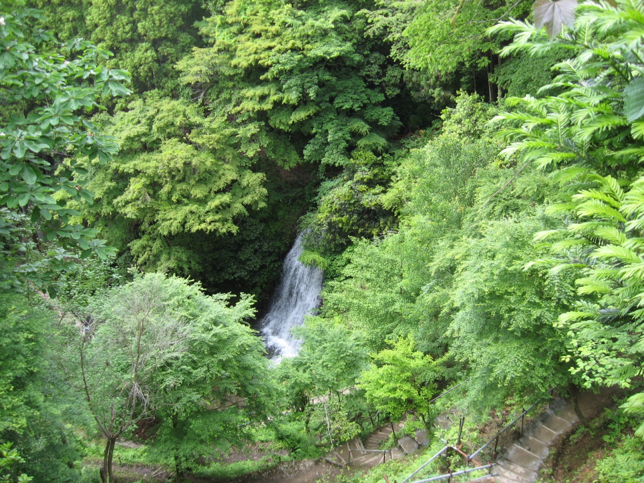 粟又の滝めぐりを始めて、最初に見えたのが、話に聞いた「幻の滝」でした。聞くところによれば、この地を初めて見て気に入って、滝の整備を行ない、今の姿になったということです。自然の景観をそのまま残して、滝の全体像が見られます。感動的でした