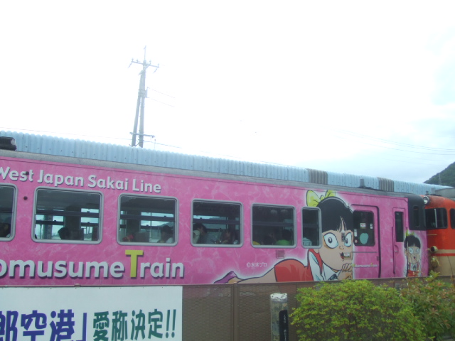 鬼太郎一色の街、境港と米子を結ぶ列車です。
