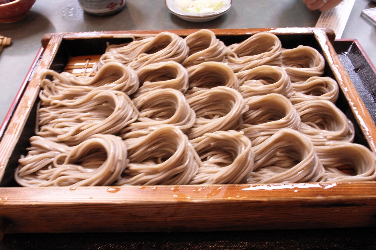 一口ずつきれいに盛りつけてあり、普通のそばよりもかなりつるつるしていました。