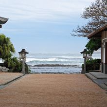 砂浜にある神社で、拝殿の方から入り口の方を見ると目の前が海という不思議な写真が撮れました。敷地自体も松とか杉とかでなく、なんだか南国にある神社みたく一風変わった神社でした。人もそんなに多くなく、良かったです。