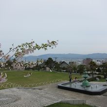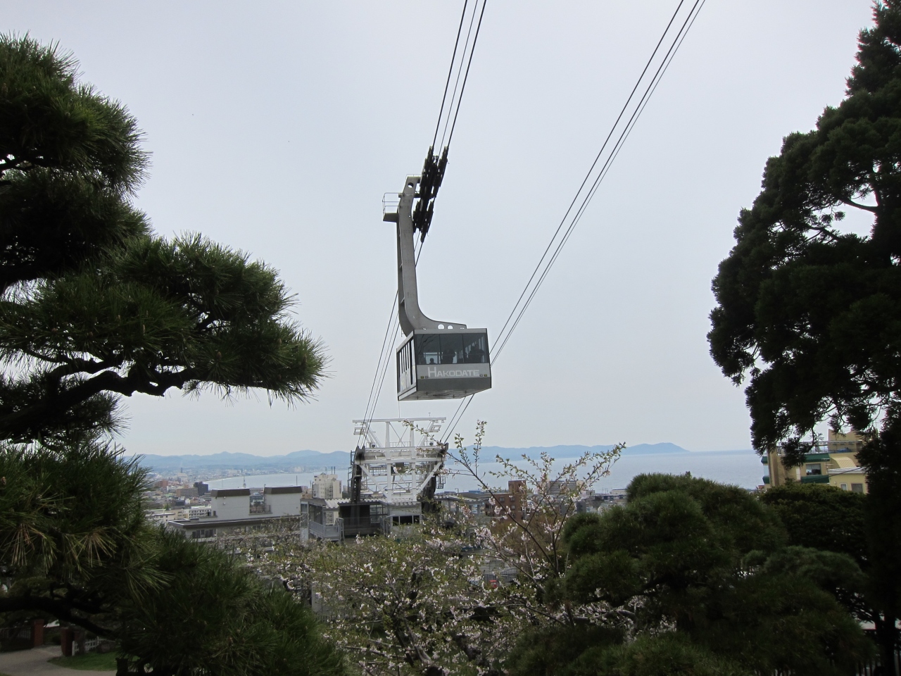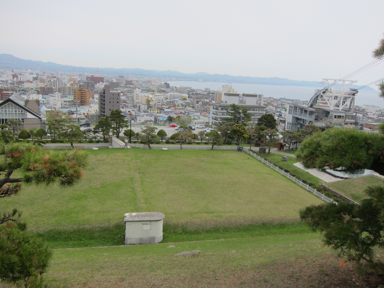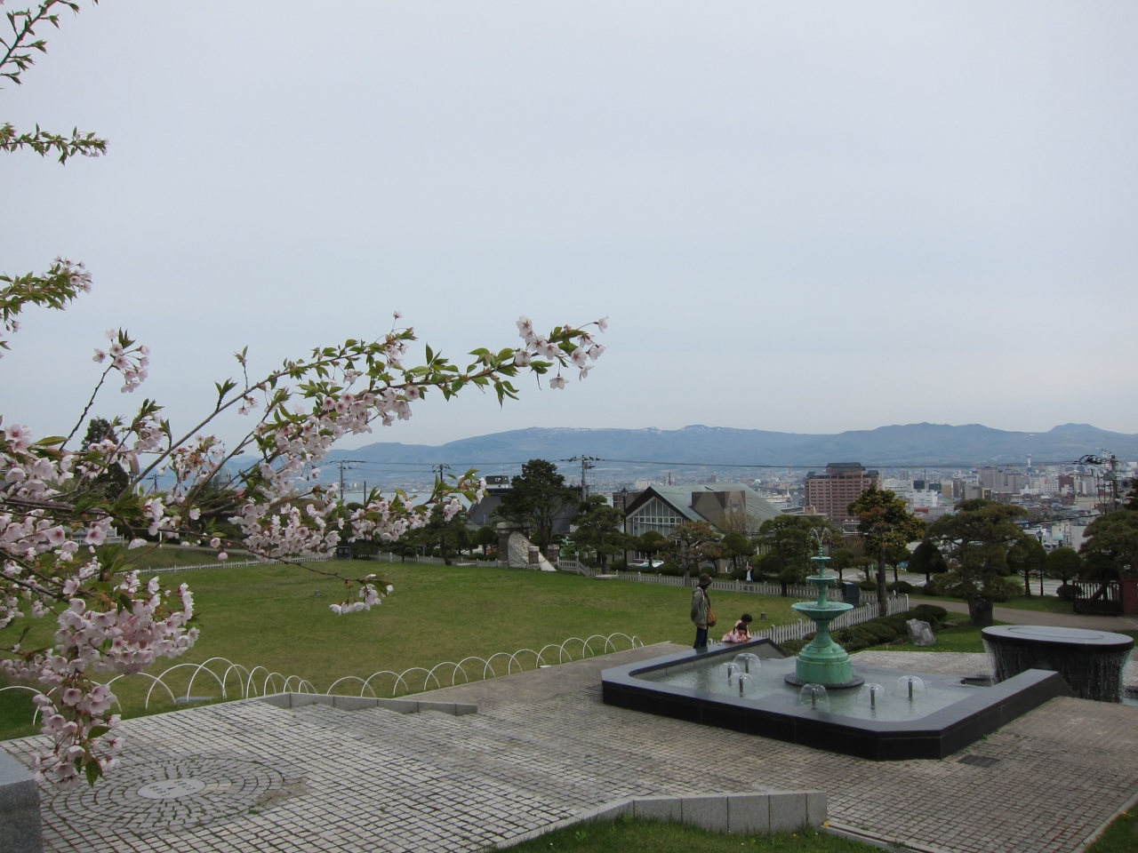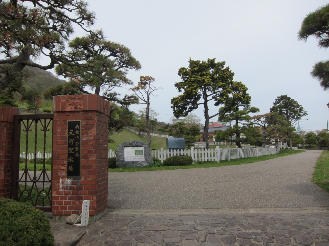函館山ロープウェイの直下にあります。市電からだと十字街、バスはロープウェイ山麓駅までのシャトルバスを利用すると良いと思います。車だと山麓駅の前に有料の大きな駐車場がありますが、隣の護国神社の駐車場は無料です。配水場は傾斜地だけという感じですから、近くのハリストス、元町などの教会などとセットで回ることになると思います。場内には上の方まで桜が植えられ、ロープウェイや函館港などと相まって眺めが良いです。反対側の下北半島も少し見えます。