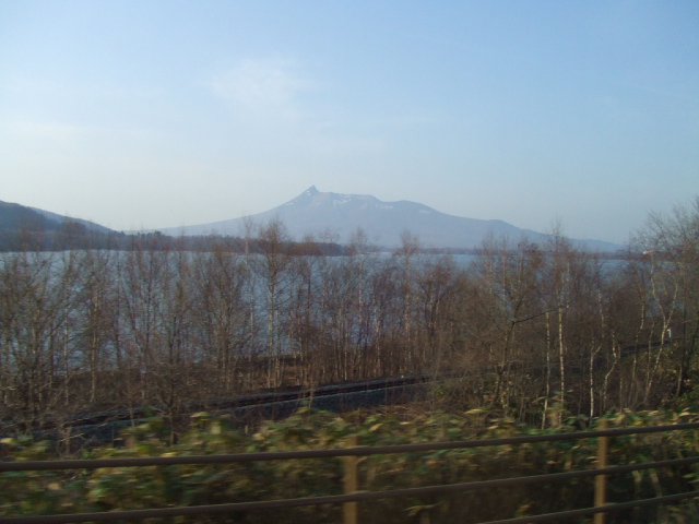 標高1,131 mの活火山。湖越しに雄大な山を眺めていると、北海道だなぁと実感します。特徴のある尖った山頂部は、噴火の跡なのだとか。