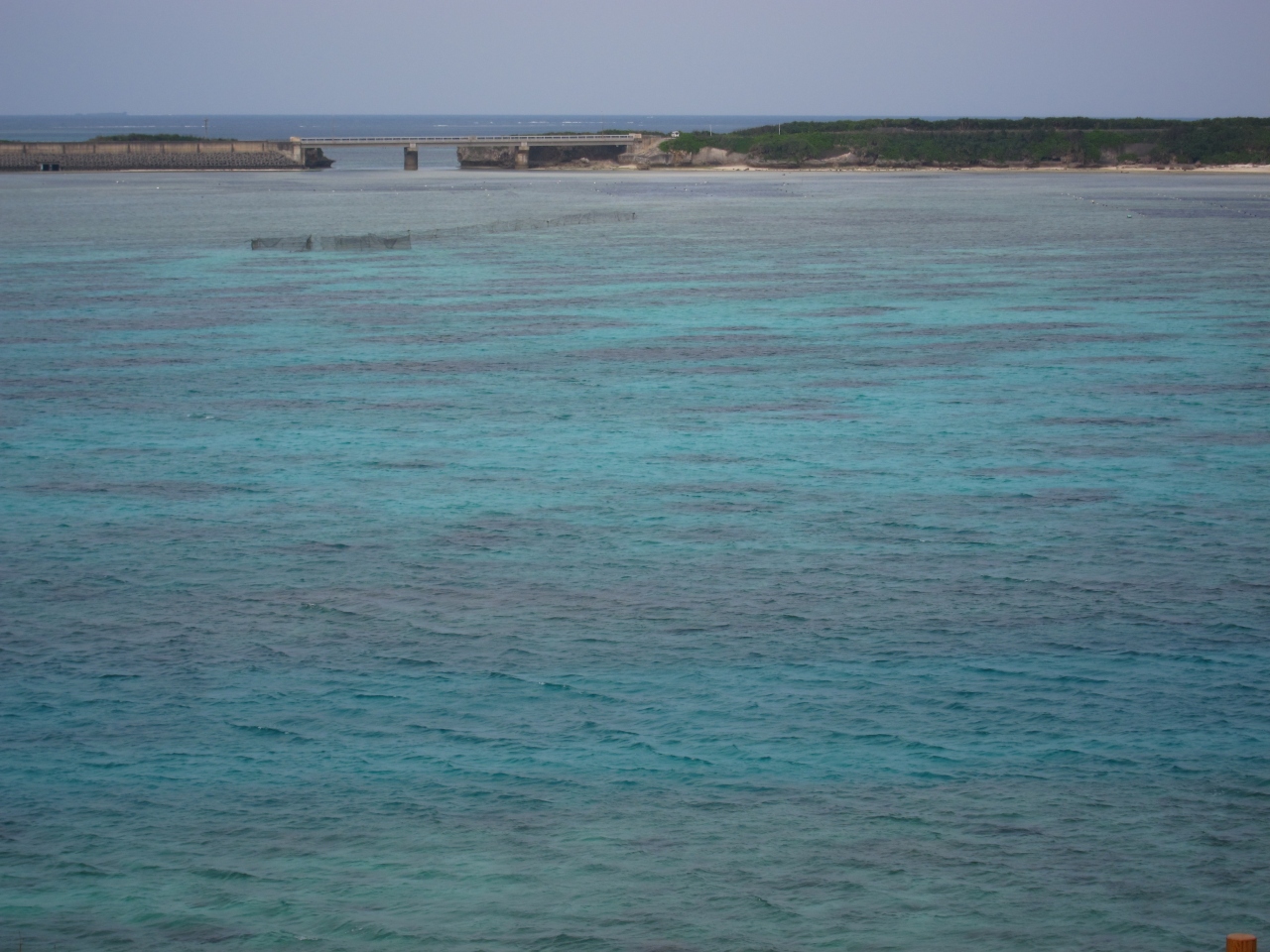 市街から池間島に向かい、雪塩製塩所の入り口を右手に分岐を左手に進むと西平安名崎に辿りつきます。ここには風力発電の大きなプロペラがと駐車場から少し登った所に展望台があります。展望台からは正面に池間大橋を一望できます。行った時は曇っていて海の色が黒かったですが、晴れていれば青い海と橋の絶景ポイントです。