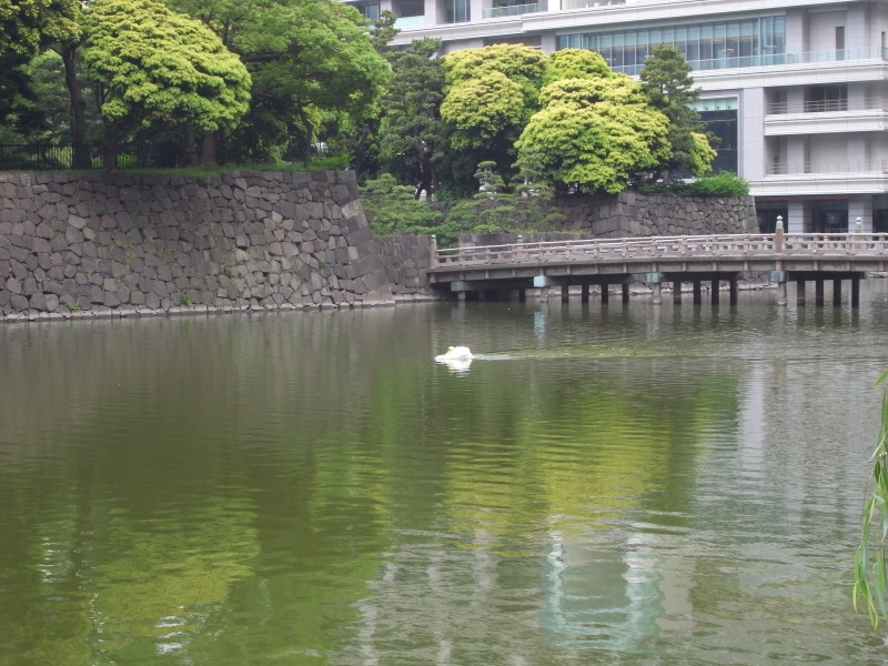 内濠にはアヒルがいました。餌の時間だったようで、アヒルは餌に向かって一目散に泳いでいました。