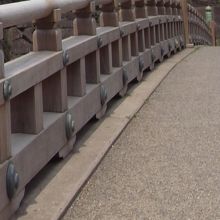 この橋、欄干が木製で一見木橋のように見えましたが、橋脚はコンクリートでした。それでも現代の高層ビル群から江戸時代へタイムスリップをさせてくれるのに十分な趣きがありました。
