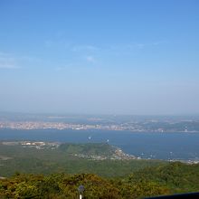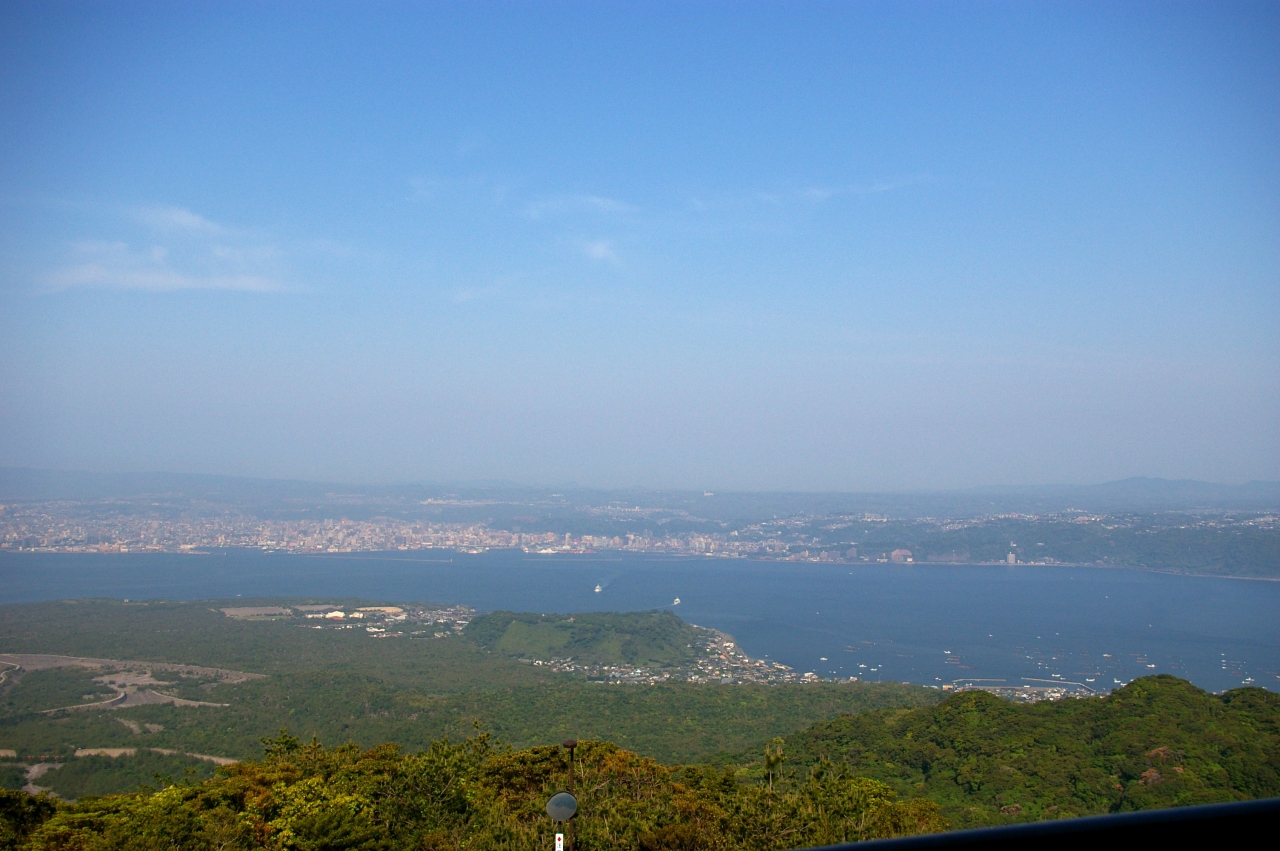 売店の入っているそれほど大きくない建物の、外周の階段を上ってテラスのようなところから火山を見上げたり、反対側の桜島と鹿児島の街の景色を見下ろしたりできます。