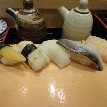 ちゃんとしたお寿司だと予算外、博多駅付近だと回転寿司もあまりなくて口コミでまあまあ評判の良かったこちらへ。お昼時だったので並びましたが20分くらい。10時から16時までにぎりセットには茶碗蒸しとお吸い物が無料で付きます。